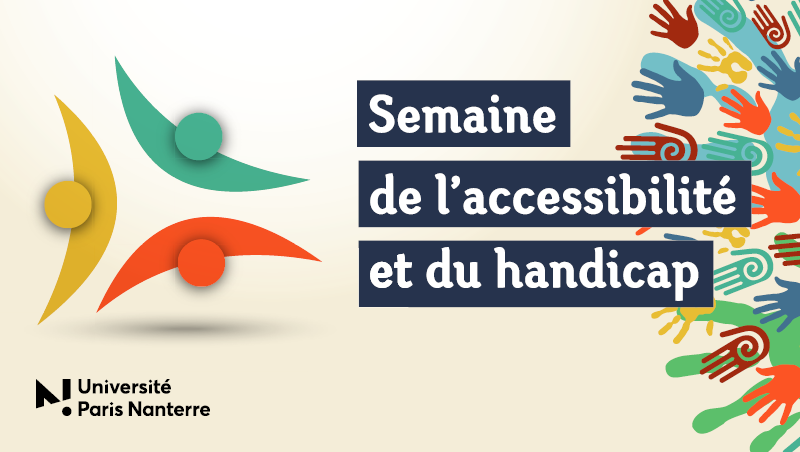 - Semaine de sensibilisation handicap (SAH), édition 202616 mars 2026 - 28 mars 2027Tous concernés, tous mobilisés ! Nous avons le plaisir de vous convier à la Semaine de l’Accessibilité et du Handicap (SAH) organisée par le Service Handicap (Accompagnement Parcours Insertion) de l'Université Paris Nanterre du lundi 30 mars au vendredi 3 avril 2026 inclus, les activités se dérouleront en présentiel sur tout le campus de Nanterre. Lire la suite